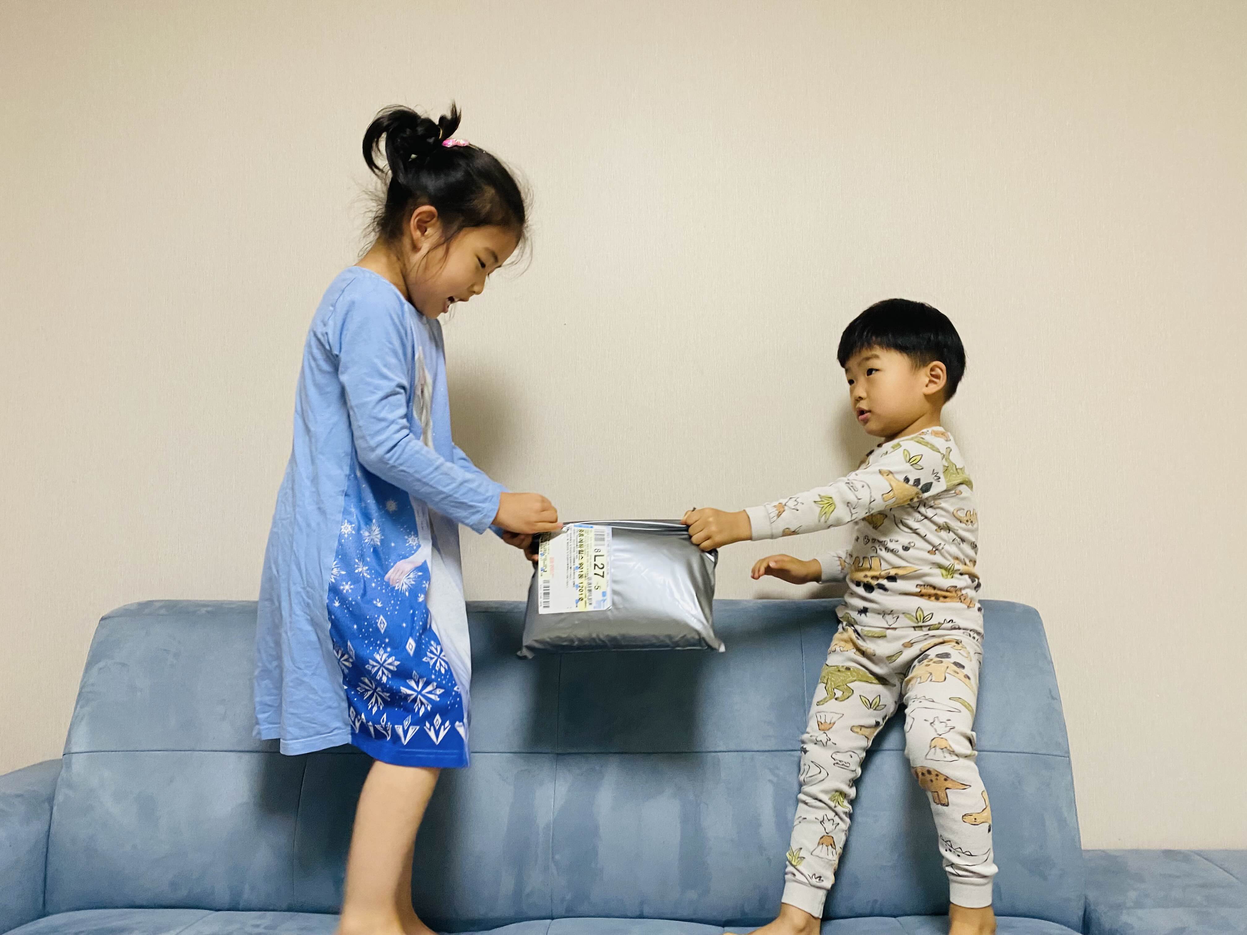 “우와”하고 택배에서 나온 내복을 들고 자랑하기! 알려주지 않았는데도 첫찌 별은 빨강, 둘찌 별은 초록을 집어들었다. 바꿔서 주문했음 큰일날뻔했다.