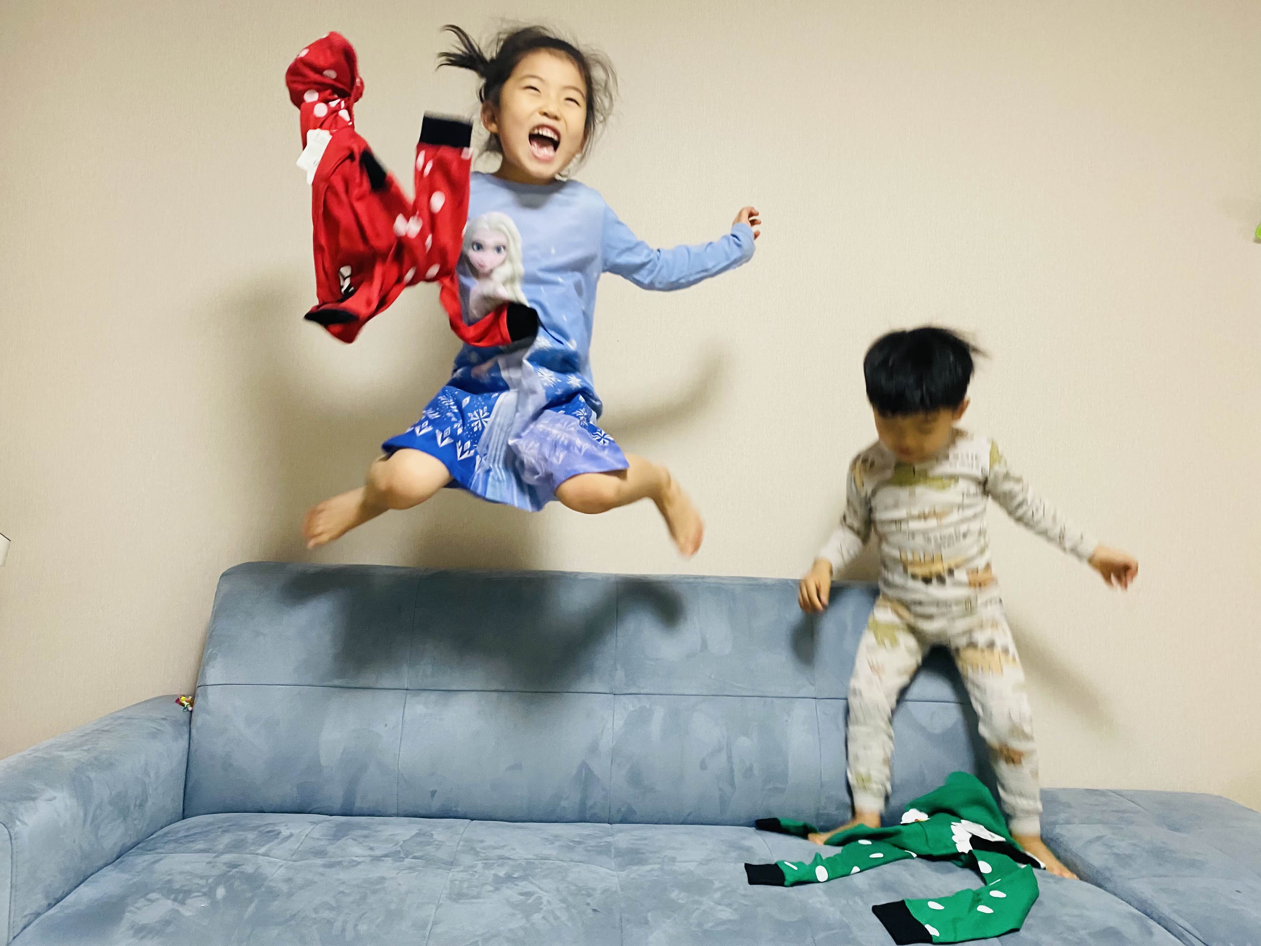 크리스마스라는 것까지 더해져 정말 마음에 드는 선물이되어 한껏 들뜬 두 별꽃들! 아이고 소파 괜찮니?