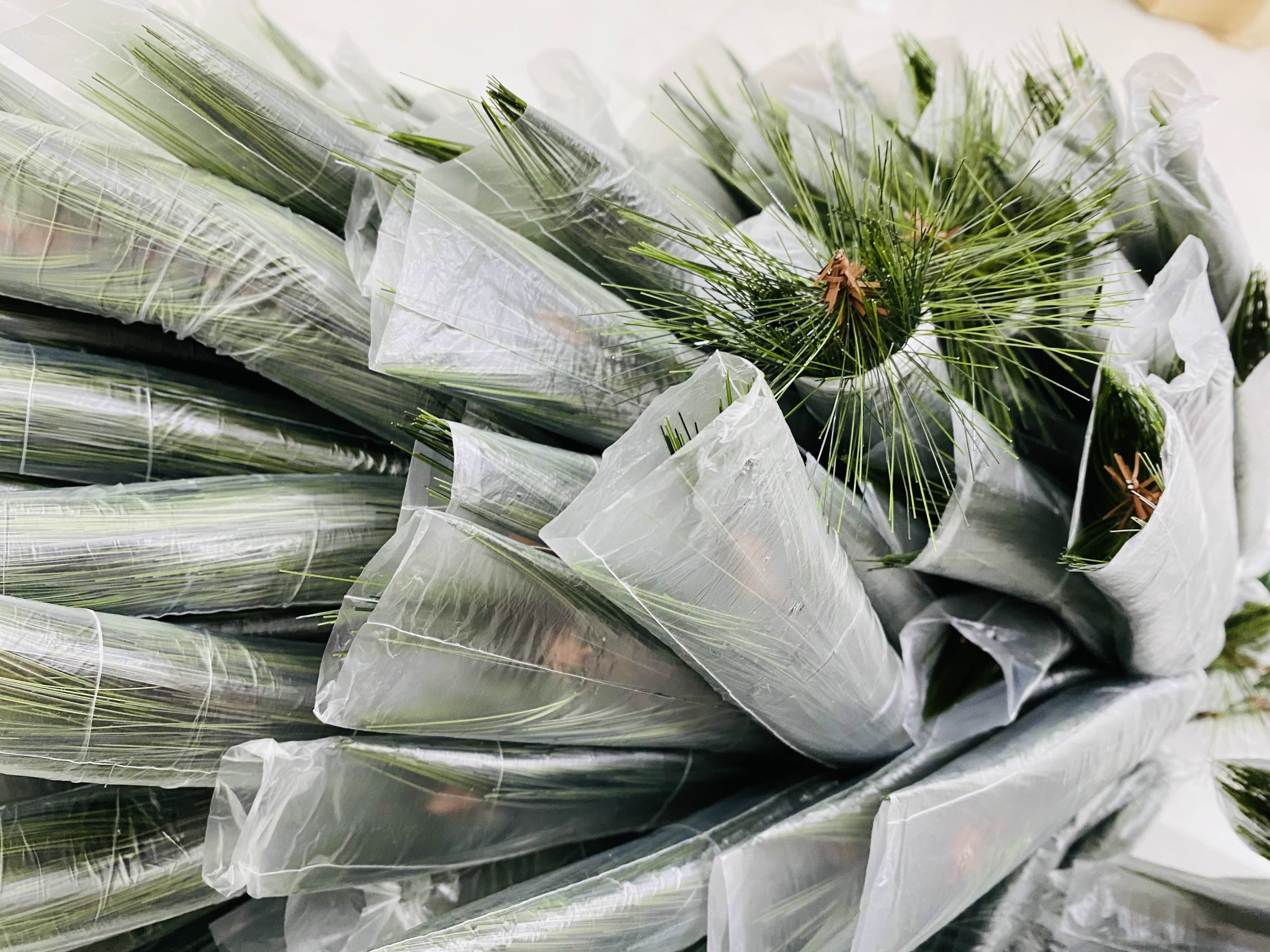 삐죽삐죽 솔잎들이 비닐봉지 하나하나에 모두 감싸져 있었다.