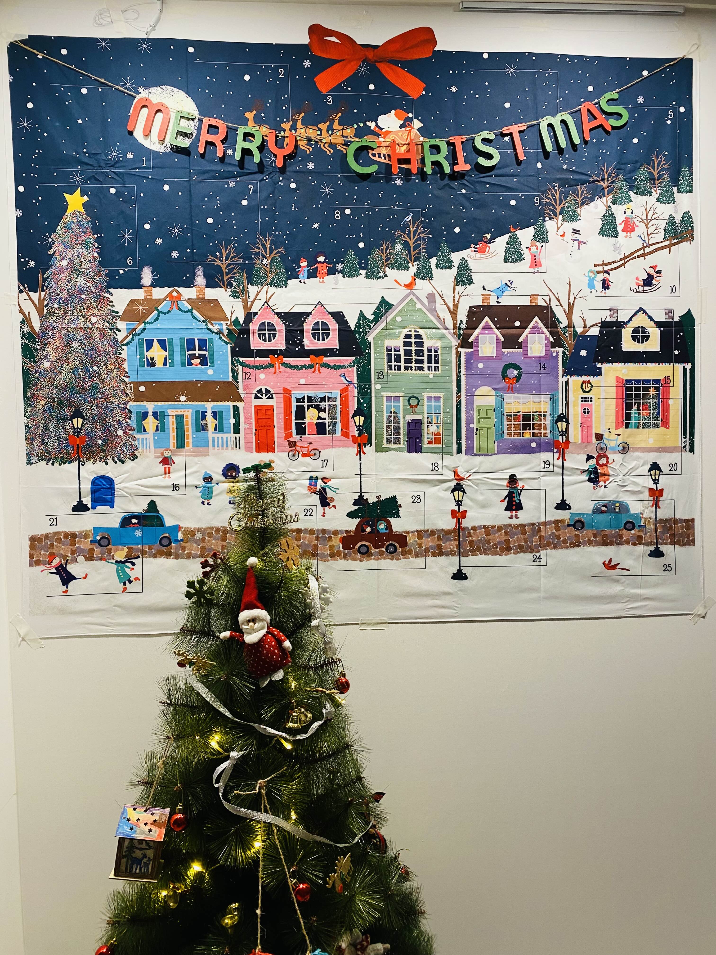 그림을 때어내고 주문한 크리스마스 패브릭 포스터를 붙였다.