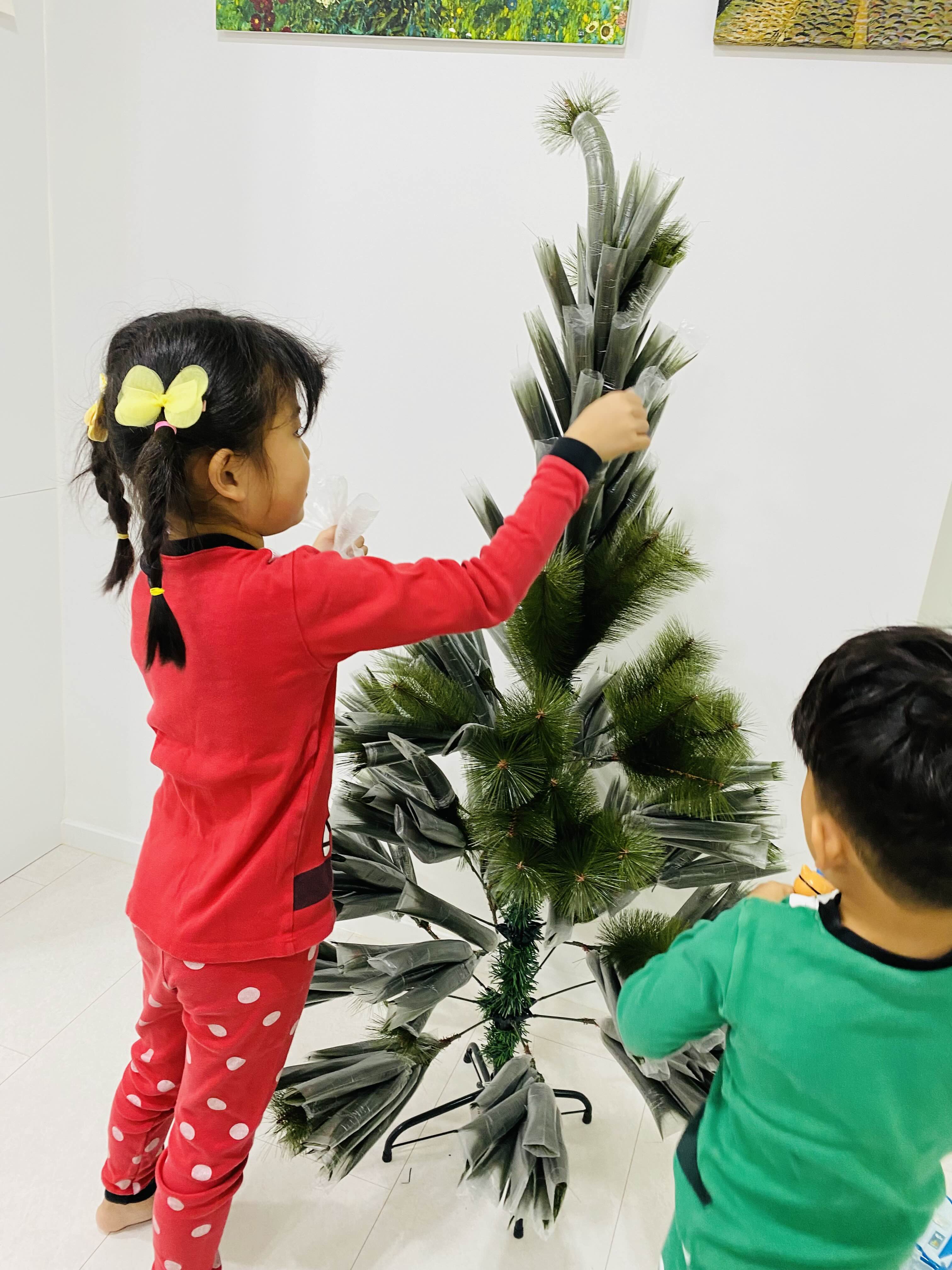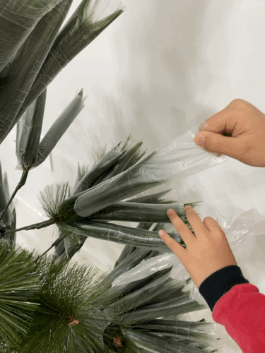 크리스마스 트리 꾸미기를 한다고 한껏 신난 아이들에게 비닐 벗기기 임무를 주었다.