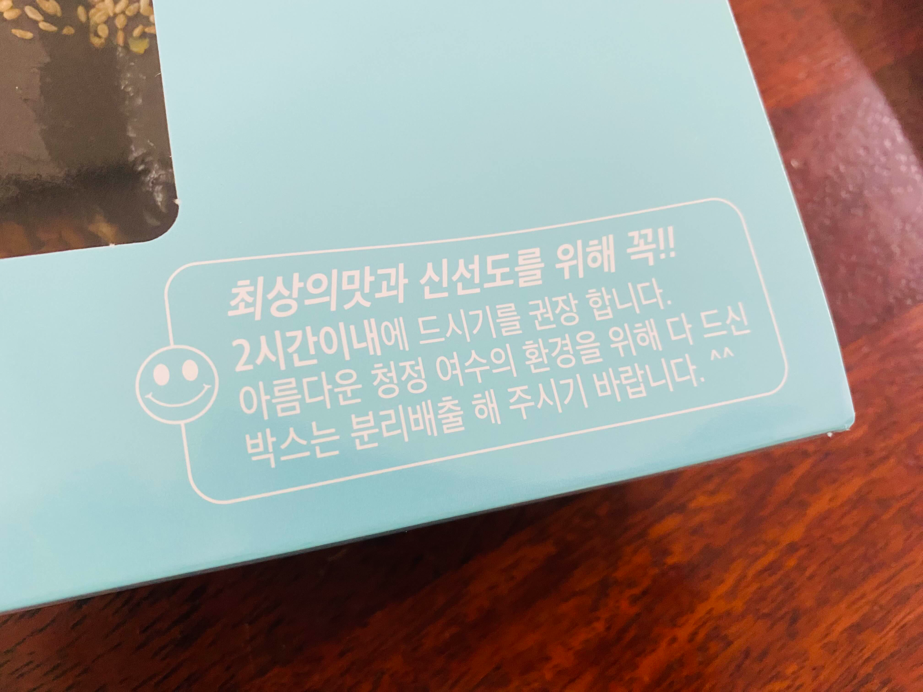 포장 후 2시간 이내에 먹기를 권장한다고 쓰여있었다.