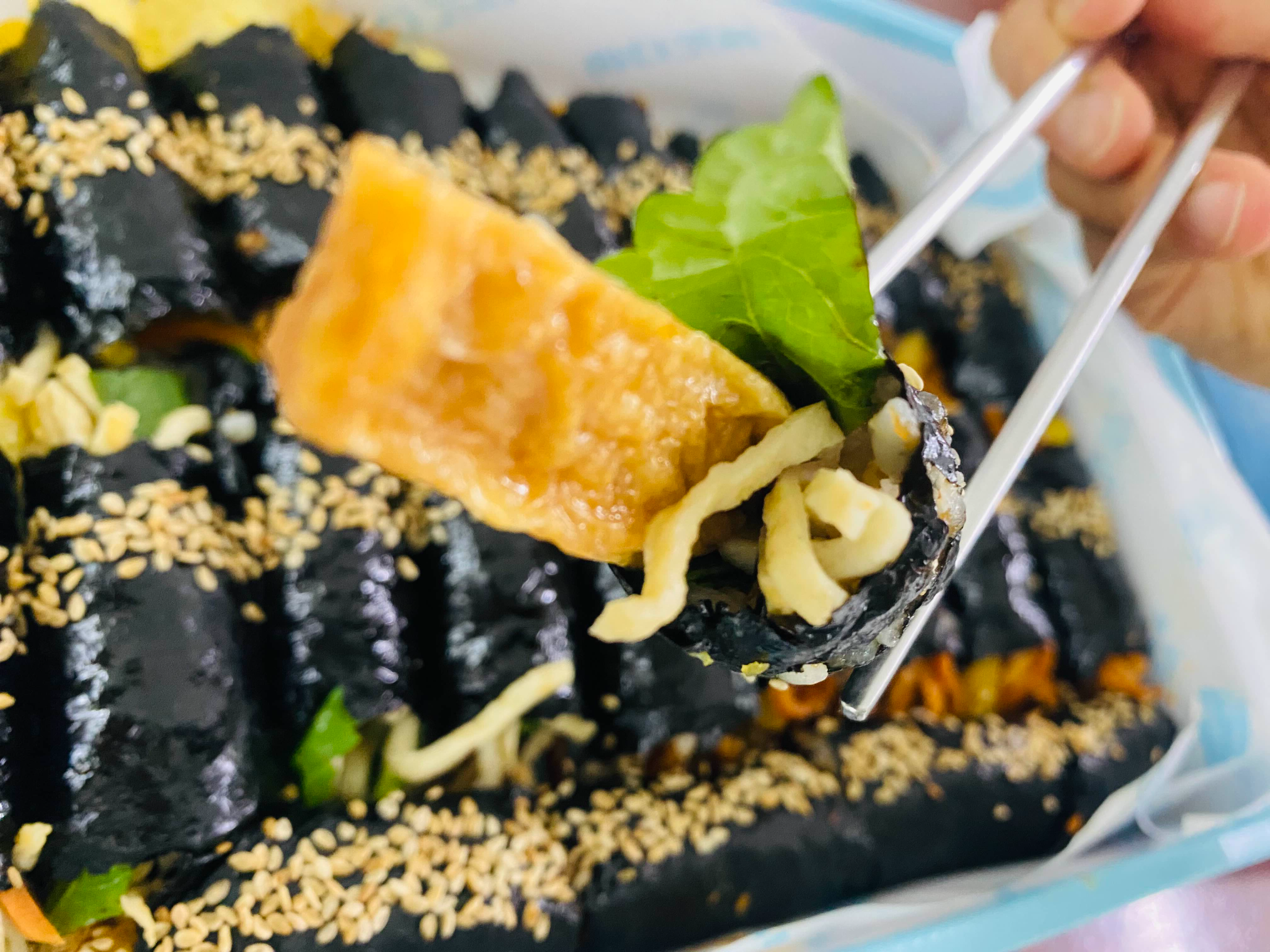 유부의 짭조롬한 맛이 생각대로 느껴지는 김밥이었다.