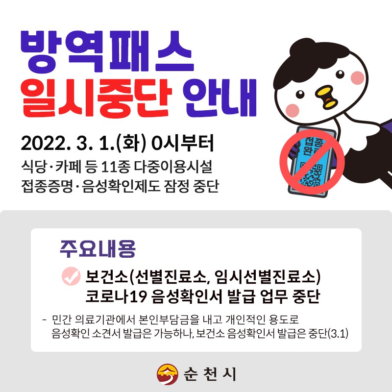 방역패스 일시중단! 모든 시설에서 방역패스 중단